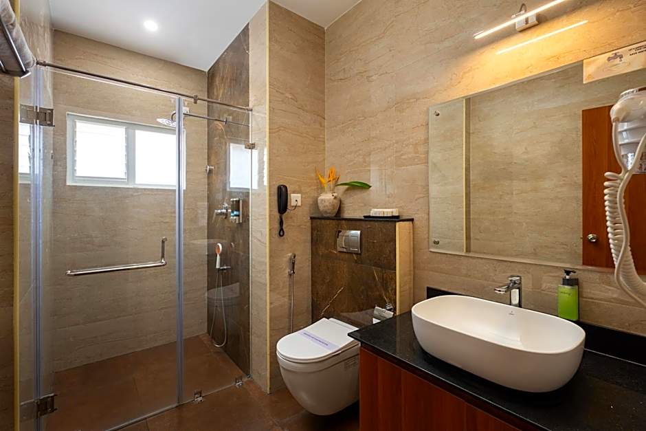 Air-conditioned room features a cable TV, seating area and desk. Private bathroom includes a shower and toilet.